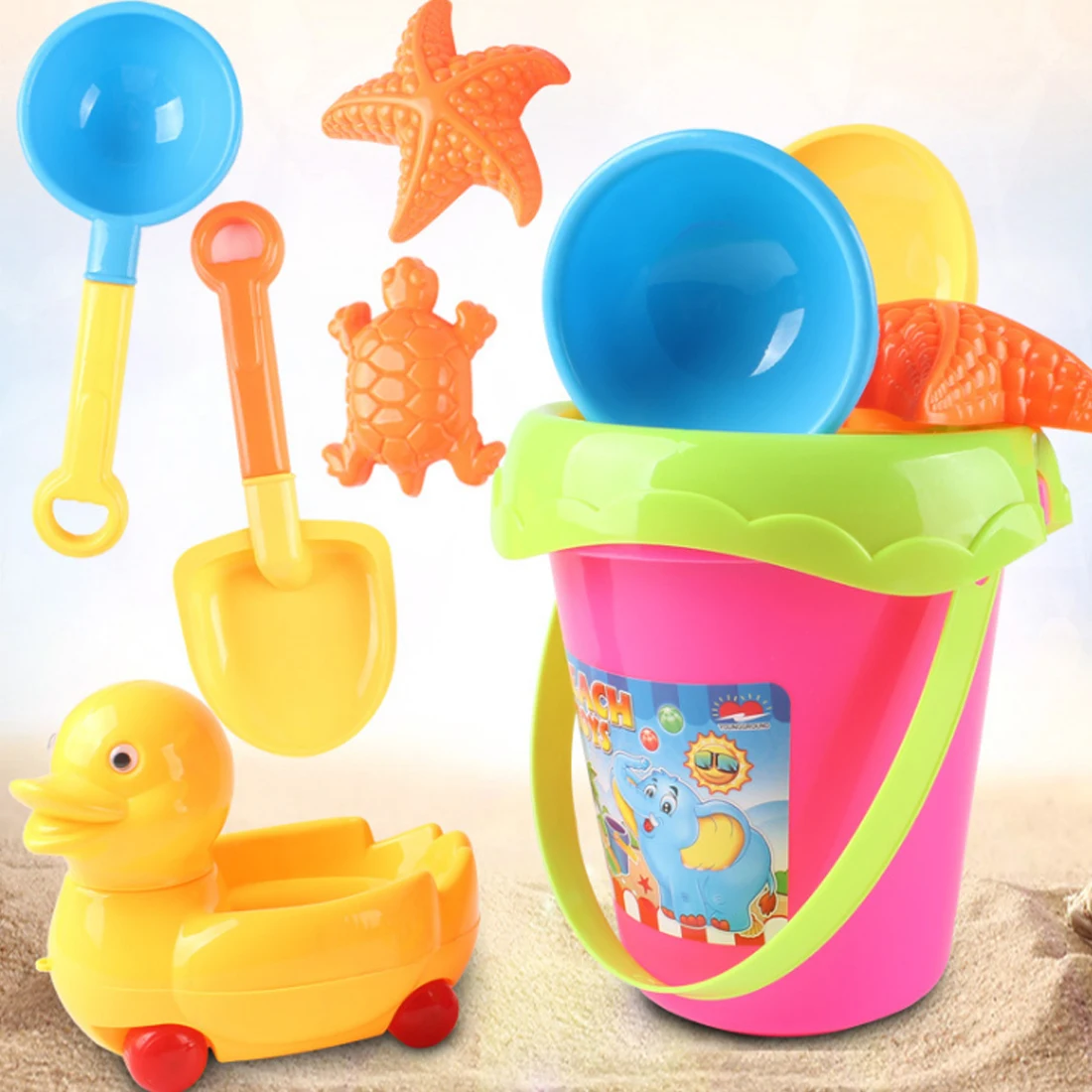 Best 6Pcs/set Beach Sand Toys Beach Toys Set with Bucket Shovel Outdoos Fun Toys for Kids