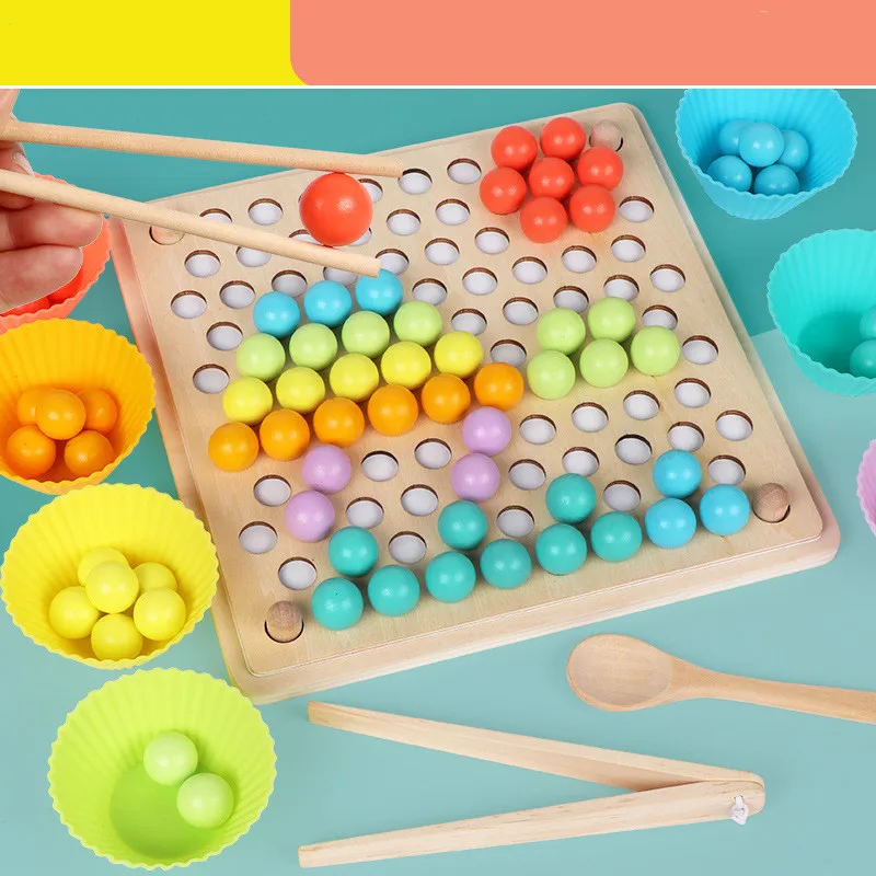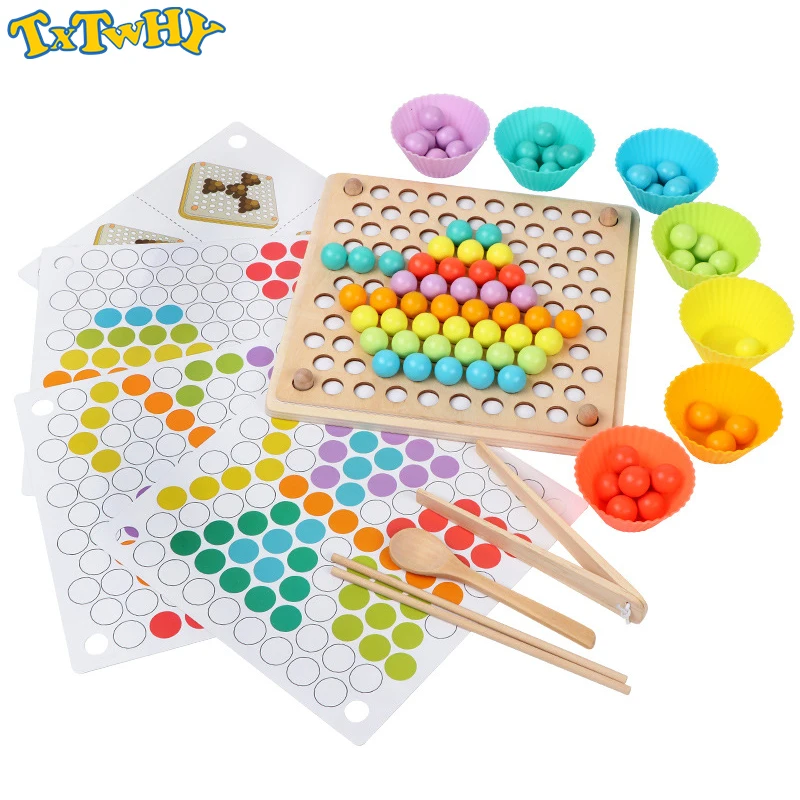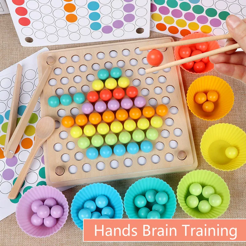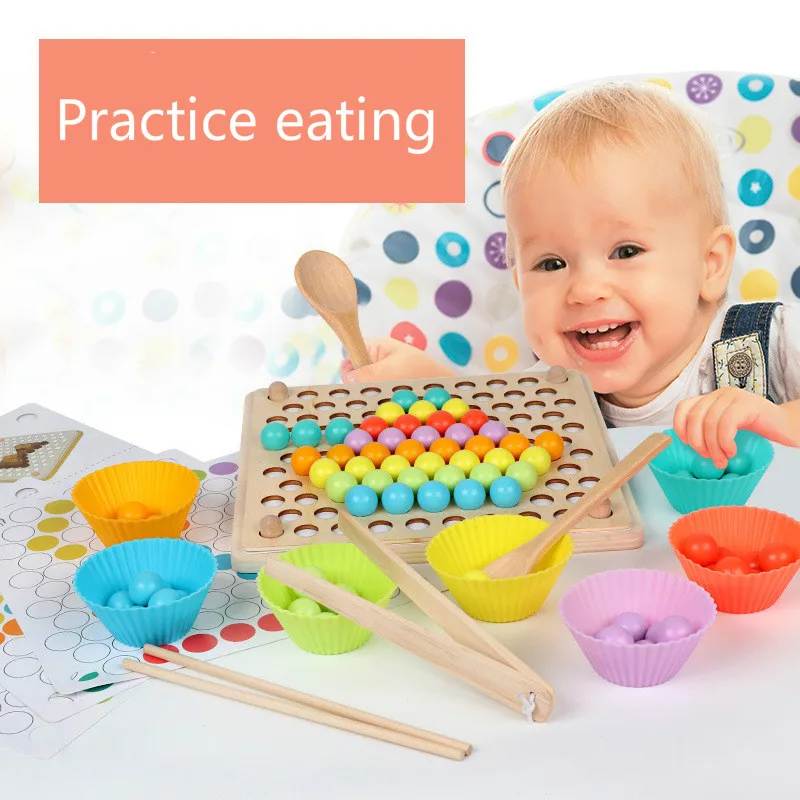 Ideal Kids Toys Montessori Wooden Toys Hands Brain Training Clip Beads Puzzle Board Math Game Baby Early