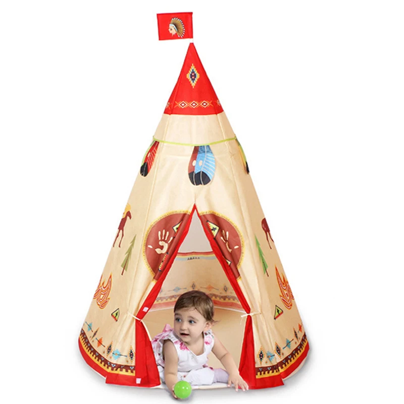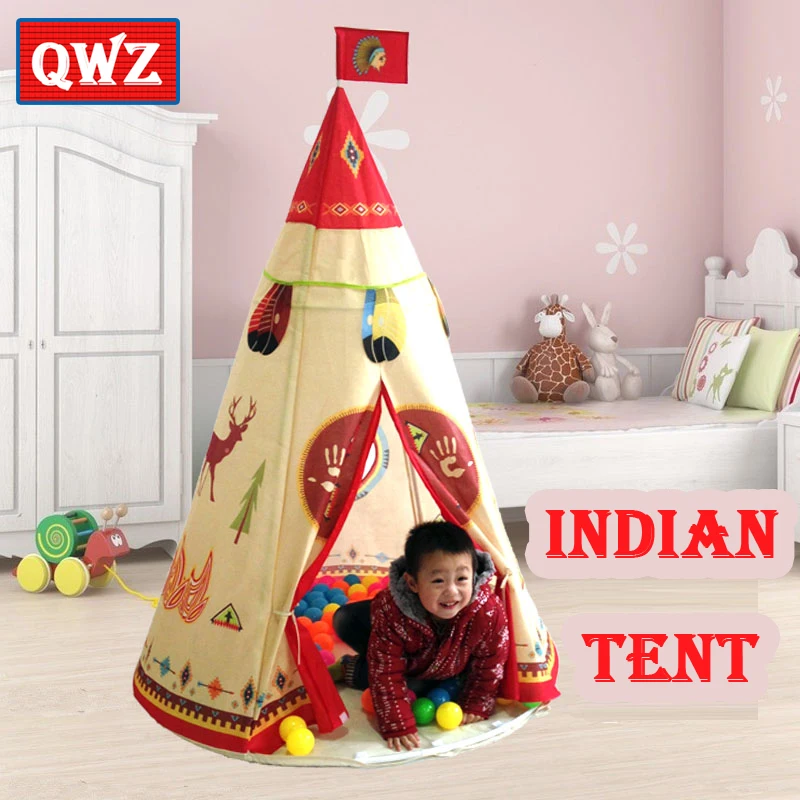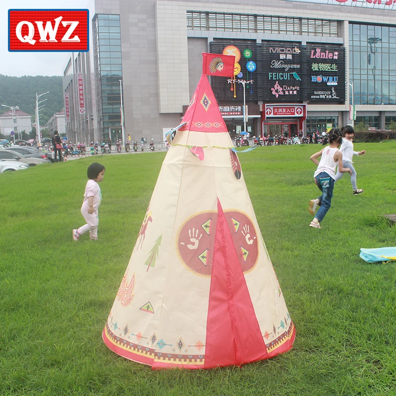 New QWZ Natural Indian Pattern Children Toy Tent Teepees Safety Tipi Portable Indoor Game Tents Outdoor