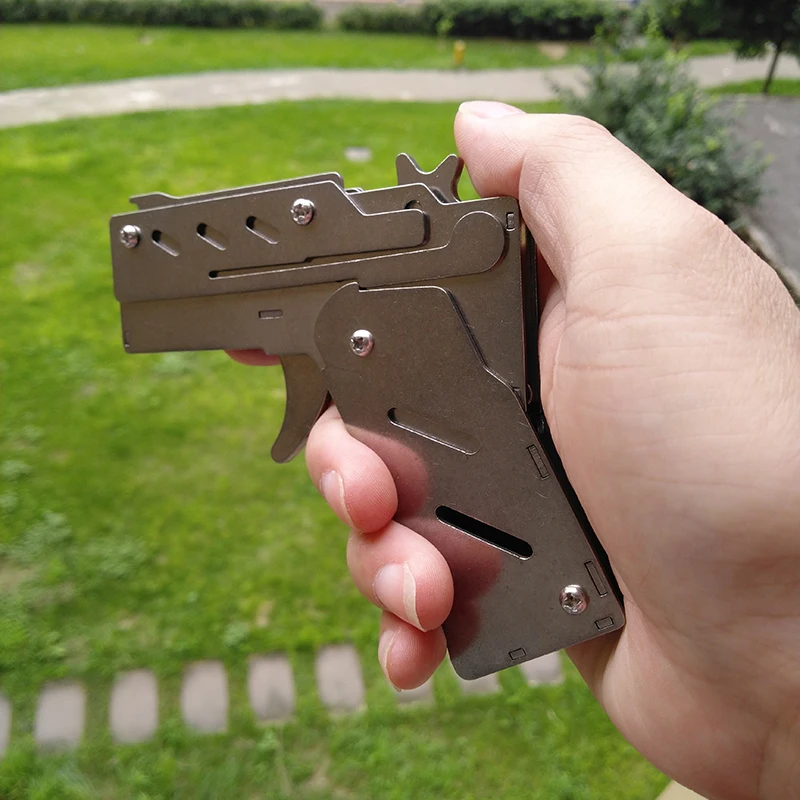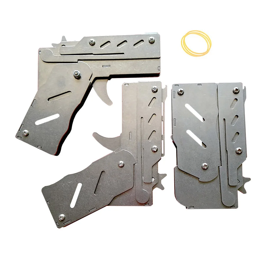 New Stainless steel folding Rubber Band Hand Gun boy Metal Rubber Guns Home Toy Pistol Gifts Outdoor Fu