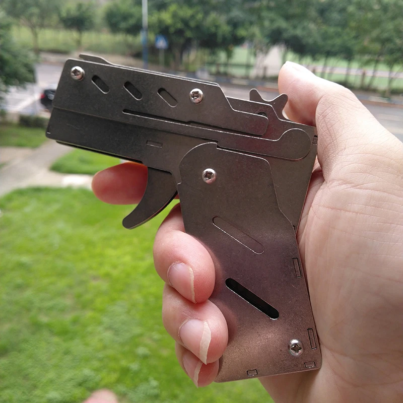 Most effective Stainless steel folding Rubber Band Hand Gun boy Metal Rubber Guns Home Toy Pistol Gifts Outdoor Fu